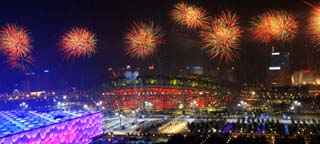 北京奧運(yùn)會(huì)閉幕式上燃放的煙花。本報(bào)記者:陳凱