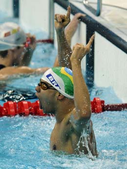 9月8日,巴西選手安德烈·布拉西爾在北京2008年殘奧會(huì)游泳S10級(jí)男子100米蝶泳決賽中,以56秒47的成績(jī)打破世界紀(jì)錄并獲得金牌。