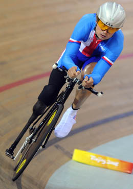 9月8日,捷克選手耶熱克在比賽中。當(dāng)日,在老山自行車館舉行的北京2008年殘奧會(huì)場(chǎng)地自行車男子個(gè)人追逐賽(LC2)中,耶熱克以4分46秒999的成績(jī)奪得冠軍并打破殘奧會(huì)紀(jì)錄。