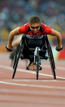 9月15日,加拿大選手選手史迪威在比賽中。當(dāng)日,在國(guó)家體育場(chǎng)進(jìn)行的北京2008年殘奧會(huì)女子100米T52級(jí)決賽中,史迪威以19秒97的成績(jī)奪冠,并打破世界紀(jì)錄。
