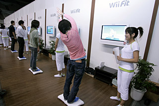 傳統(tǒng)游戲玩家常獲稱“沙發(fā)里的土豆”,意思是他們整天坐在沙發(fā)里打游戲。而任天堂公司2006年11月推出的Wii游戲機與傳統(tǒng)游戲機最大的不同之處在于,玩家可以手持兩個無線手柄,站在游戲畫面顯示屏前,根據(jù)情節(jié)需要,揮動手柄,并配合做出種種動作。 例如,在一款拳擊游戲中,玩家揮出一拳,屏幕上代表玩家的卡通形象也會隨之揮出一拳;在高爾夫游戲中,玩家揮桿擊球,動作會相應(yīng)傳入游戲情節(jié)中。這一過程中,游戲機的手柄起到了傳感玩家動作的作用,使玩家在玩游戲時獲得一種身臨其境的感覺。 Wii操作方式簡單、容易上手,讓難以掌握復(fù)雜操作的學(xué)齡前兒童和對新型電子設(shè)備接受度差的中老年人可以輕松學(xué)會使用。 相對而言,Wii的新一代產(chǎn)品Wii Fit更強調(diào)娛樂和健身相結(jié)合。Wii Fit中附帶了類似體重秤的檢測板,可以測出玩家身體成分構(gòu)成。 Wii Fit中的游戲多與運動項目有關(guān),譬如呼啦圈、回環(huán)滑雪、走鋼絲和慢跑等。此外,玩家還可以用這款游戲機做瑜伽、有氧運動和肌肉訓(xùn)練。游戲過程中,玩家運動越多,游戲畫面顯示屏上顯示的分值越高。 按照任天堂的設(shè)計,Wii Fit游戲機猶如一款健康檢測儀,可以測出玩家的年齡、身高、體重以及身體成分構(gòu)成等。此外,這款游戲機還能針對玩家的身體狀況提出建議,如“您的身體平衡能力不太好”和“您體內(nèi)的脂肪過多,需要加強鍛煉”等。 任天堂公司稱,Wii Fit游戲機能夠“幫助每一名家庭成員輕松、快樂地鍛煉身體”,定期玩Wii Fit游戲機能強身健體。 任天堂2006年推出Wii游戲機時銷量可觀。而今年4月推出的Wii Fit游戲機更受玩家歡迎。據(jù)統(tǒng)計,推出Wii Fit最初兩星期內(nèi),僅在英國就售出33.8萬臺。