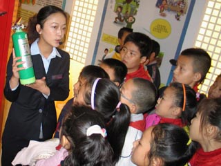 全國消防日即將來臨,新疆消防科普教育基地在烏魯木齊創(chuàng)建,今后新疆所有消防科普教育基地(站點)將定期向社會免費開放,以增強全民消防安全意識。圖為11月6日,新疆消防科普教育基地講解員向一群小學(xué)生介紹滅火器使用方法。