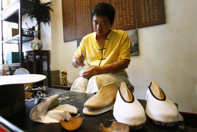 在那兵荒馬亂的年代,內(nèi)聯(lián)升的發(fā)展是斷斷續(xù)續(xù)的。到1949年新中國(guó)成立,內(nèi)聯(lián)升做鞋的種類才進(jìn)一步拓寬,開(kāi)始生產(chǎn)女鞋及解放鞋等。但到了文化大革命期間,內(nèi)聯(lián)升一度更名為“東方紅鞋店”、“長(zhǎng)風(fēng)鞋店”。直到1977年,恢復(fù)了著名老字號(hào)的名稱。 在生產(chǎn)方面,內(nèi)聯(lián)升對(duì)質(zhì)量的監(jiān)控更為嚴(yán)格,仍延續(xù)傳統(tǒng)的手工生產(chǎn)模式制鞋,F(xiàn)在他們打袼褙用的糨糊是比富強(qiáng)粉還貴的高筋粉,每平方寸81針更是執(zhí)行得一針不多也不能少的國(guó)標(biāo),每支鞋底都由內(nèi)聯(lián)升的巡視員嚴(yán)格把關(guān)驗(yàn)收。而且?guī)准倚讖S只能專供內(nèi)聯(lián)升,保證知識(shí)產(chǎn)權(quán)、商業(yè)機(jī)密不外泄;厥蘸笤诠S內(nèi)由資深的師傅接著上面等工序后制成。 2001年,內(nèi)聯(lián)升企業(yè)性質(zhì)變更為有限責(zé)任公司,員工成為了公司股東,F(xiàn)在的內(nèi)聯(lián)升把現(xiàn)代企業(yè)管理與傳統(tǒng)品質(zhì)結(jié)合,在保證高品質(zhì)的同時(shí),積極研發(fā)出各種新款男女布鞋、皮鞋;男女布拖鞋等。目前,內(nèi)聯(lián)升總店?duì)I業(yè)面積1200平方米,銷售網(wǎng)點(diǎn)遍布全國(guó)各大中城市,分店、加盟連鎖店、專柜、經(jīng)銷網(wǎng)點(diǎn)400多個(gè);布鞋、皮鞋花色品種有3000余個(gè)。2006年內(nèi)聯(lián)升被中國(guó)商業(yè)聯(lián)合會(huì)授予“中國(guó)布鞋第一家”榮譽(yù)稱號(hào)。2007年“內(nèi)聯(lián)升千層底布鞋制作工藝”被收入到北京市非物質(zhì)文化遺產(chǎn)名錄。同年被國(guó)家工商行政管理總局認(rèn)定為“中國(guó)馳名商標(biāo)”,成為手工布鞋行業(yè)惟一獲此殊榮的企業(yè)。 其實(shí),內(nèi)聯(lián)升的故事講到這該是收尾了,可第29屆奧運(yùn)會(huì)在北京的召開(kāi),又給內(nèi)聯(lián)升帶來(lái)了機(jī)會(huì)。講的是現(xiàn)任董事長(zhǎng)程來(lái)祥在翻閱報(bào)紙時(shí)偶然看到一條消息:奧運(yùn)頒獎(jiǎng)禮儀小姐訓(xùn)練時(shí)穿的皮鞋把腳磨破了,還要貼上創(chuàng)可貼堅(jiān)持練。程來(lái)祥立馬找來(lái)奧運(yùn)禮儀小姐的照片,覺(jué)得服裝很好看,很傳統(tǒng),可是鞋和衣服不太配。于是聯(lián)系到奧組委,提出愿為為奧運(yùn)會(huì)免費(fèi)提供頒獎(jiǎng)禮儀小姐專用鞋,讓禮儀小姐舒舒服服地工作。此后,我們看到的是奧運(yùn)禮儀小姐服裝與內(nèi)聯(lián)升鞋的和諧搭配,更好地展示了一種東方韻味的美。 內(nèi)聯(lián)升的故事隨著時(shí)代的進(jìn)步還會(huì)時(shí)時(shí)發(fā)生,但它那講究品質(zhì)、嚴(yán)格工序的傳統(tǒng)當(dāng)會(huì)一代代傳承下去。 |