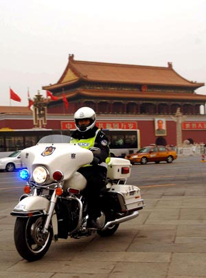 由企業(yè)捐贈的3輛警用哈雷摩托車日前在北京東城交警支隊帥府園隊正式上崗,主要用于天安門廣場和東長安街等路段的交通巡邏和交通秩序維護任務(wù)。12月10日,一名交警駕駛警用哈雷摩托在天安門廣場巡邏。