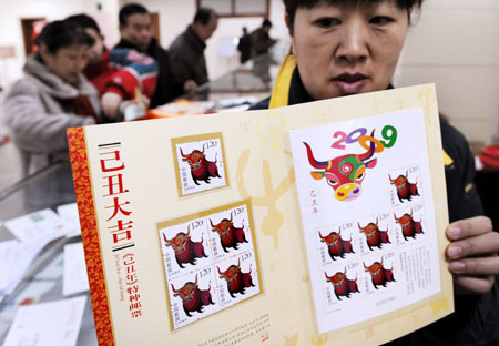 攝 | 《己丑年》特種郵票1月5日正式發(fā)售,剛剛面市就成為集郵迷搶購的熱點(diǎn)。 當(dāng)日上午8時(shí)許,記者在北京東區(qū)郵票公司看到,由于搶購人數(shù)過多,保安開始限制進(jìn)入人數(shù)。數(shù)百名集郵愛好者在郵局外邊排隊(duì)等候,郵局大廳內(nèi)被搶購郵票的集郵迷圍滿。 據(jù)了解,今年發(fā)行的《己丑年》生肖郵票為一套一枚,面值1.2元,是我國發(fā)行的第三輪生肖郵票中的第六套。郵票圖案為一只歡奔的火牛,寓意奔騰紅火和“牛年興旺”之意。 郵票設(shè)計(jì)者陳紹華特意將牛蹄畫成馬尾狀,以中國傳統(tǒng)的寫意手法,做了大膽、夸張的藝術(shù)處理,意在表現(xiàn)飛馳的速度、煙塵滾滾的視界效果;鹋kp目直視前方,充滿牛勁,預(yù)示了新一年的希望。 為迎來2009牛年到來,北京還推出了以“牛氣沖天”為主題的12種生肖賀歲郵品為節(jié)日增添喜慶氣氛。 記者從北京市郵票公司獲悉,推出的系列郵品包括己丑年(牛)首日封、己丑年(牛)郵折、己丑年(牛)立體卡書、己丑年(牛)宣紙封、2009迎春封、牛街生肖紀(jì)念封、己丑年(牛)大版張郵票冊、己丑年(牛)小版張郵票冊、“如意雙贏!绷鹆ФY品套裝、“絲綢五牛圖”禮品套裝、“己丑大吉”生肖專題郵冊等。 生肖是中華傳統(tǒng)文化的瑰寶,是中華民族企盼祥瑞,祝福生活的一種美好寄托。1980年,中國發(fā)行第一枚生肖郵票《庚申猴》,至今已經(jīng)發(fā)行了總計(jì)29套生肖郵票。生肖郵票和郵品成為普通市民和集郵愛好者樂于收藏的紀(jì)念品。 據(jù)北京市郵票公司負(fù)責(zé)人介紹,2009年生肖郵品,從“身體倍兒牛、生意倍兒牛、學(xué)業(yè)倍兒牛、事事倍兒!彼膫(gè)方面切入,寓意2009年“牛年倍!。 2009年推出的系列郵品中,“己丑年(牛)”首日封、郵折在設(shè)計(jì)理念上,突出喜慶、祥和的節(jié)日氣氛。設(shè)計(jì)者以濃郁的色彩,對牛的形象采取大膽、浪漫的處理手法,既保持了造型的整體性,又表現(xiàn)了中國傳統(tǒng)特有的剪紙形象。牛背上的孩子手持金如意面帶笑容,生活氣息濃厚,色彩鮮明!凹撼竽辍(牛)宣紙封以水墨生肖牛為圖案,由老字號“榮寶齋”采用傳統(tǒng)的宣紙木版水印工藝制作而成,是生肖郵品中的特色產(chǎn)品。 而“己丑大吉”高檔生肖郵冊,將中國傳統(tǒng)工藝與郵冊相結(jié)合,以金黃和紅色為主色調(diào),郵冊中包含了1985年、1997年和2009年三輪生肖牛票和“己丑大吉”圖案的紀(jì)念郵票、“己丑大吉”小本票、“牛年真好”的個(gè)性化郵票等。 |