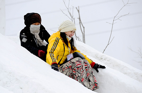 1月11日,為期35天的沈陽(yáng)國(guó)際冰雪節(jié)在沈陽(yáng)棋盤(pán)山風(fēng)景旅游開(kāi)發(fā)區(qū)拉開(kāi)帷幕。本屆冰雪節(jié)的主會(huì)場(chǎng)設(shè)在沈陽(yáng)棋盤(pán)山冰雪大世界和關(guān)東影視城,將傳統(tǒng)的冰雪狂歡與盛京燈會(huì)、關(guān)東廟會(huì)聯(lián)合推出,令游客在體驗(yàn)冰雪游戲、欣賞雪雕冰燈的同時(shí),也能領(lǐng)略關(guān)東傳統(tǒng)年俗風(fēng)情。 圖為游客在沈陽(yáng)棋盤(pán)山冰雪大世界體驗(yàn)雪滑梯。 | |