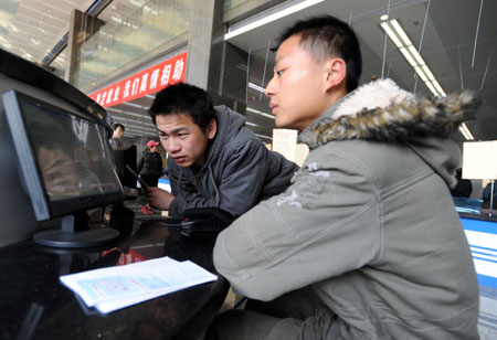 1月14日。兩位求職者通過電子顯示器查看招聘信息。 1月14日,長沙市就業(yè)援助周活動專場招聘會在長沙市人力資源服務中心舉行。這一場專門針對經認定的就業(yè)困難人員、“零就業(yè)家庭”成員、城鎮(zhèn)新登記失業(yè)人員的招聘會,吸引了80家用人單位為就業(yè)困難群體提供2000來個崗位。長沙市人力資源服務中心在現(xiàn)場設立“就業(yè)困難人員服務窗口”,為就業(yè)援助對象免費提供職業(yè)指導、素質測評、創(chuàng)業(yè)指導服務、勞動保障政策咨詢等“一站式”服務。 |