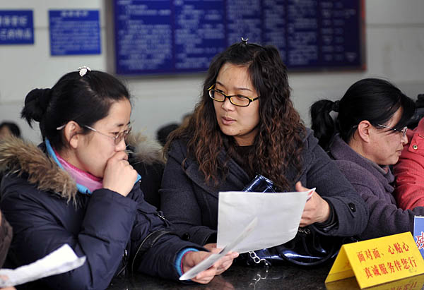 2月16日,兩位求職者在濟(jì)南市“春風(fēng)送崗位”招聘會(huì)現(xiàn)場(chǎng)交流信息。 當(dāng)日,由山東省勞動(dòng)保障廳等機(jī)構(gòu)聯(lián)合舉辦的“春風(fēng)送崗位”大型綜合性招聘會(huì)在山東全省17個(gè)市同步開展。作為2009年山東省就業(yè)服務(wù)系列活動(dòng)的首項(xiàng)內(nèi)容,“春風(fēng)送崗位”招聘會(huì)通過對(duì)用工雙方采取“雙免費(fèi)”的優(yōu)惠措施,幫助高校畢業(yè)生、城鎮(zhèn)失業(yè)人員與農(nóng)民工等實(shí)現(xiàn)就業(yè)與再就業(yè)。 | |