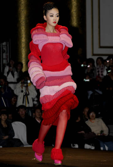 浙江理工大學2009屆畢業(yè)生設計作品發(fā)布會上展示的學生作品。 受國際金融危機影響,東京時裝周直接宣布取消活動,紐約、倫敦、米蘭等地的秋冬時裝周也縮減規(guī)模,而在北京舉行的中國國際時裝周則基本保持穩(wěn)定。一周時間里舉辦近40項專業(yè)活動。在這近40項專業(yè)活動中,關(guān)于學生作品的活動占到1/3,成為本屆時裝周的亮點。