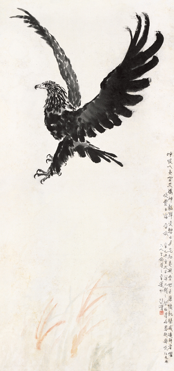 | 徐悲鴻作品《長(zhǎng)空矯翅》。