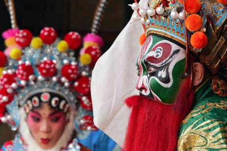 4月23日,山西絳州蒲劇團的演員在運城市新絳縣西古村表演蒲劇。 山西絳州蒲劇團是在2008年由已有62年歷史的新絳縣蒲劇團基礎(chǔ)上組建成立的,現(xiàn)有團員約70人。新絳縣蒲劇團原來是一個國營性事業(yè)單位,但由于效益低、演員流失嚴重,團長棄團而去。2008年縣政府對劇團進行整頓,在原劇團的基礎(chǔ)上成立了絳州蒲劇團。劇團改革前一直沒有排練場地,改革后政府籌資260余萬元,修整劇院,解決了住所、排練場地的問題。從2009年起,縣政府還每年拿出30萬元作為劇團送戲下鄉(xiāng)的補助,扶植劇團穩(wěn)步走向市場。新華社記者