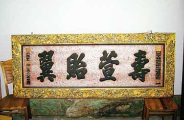 據(jù)收藏專家介紹,中國(guó)古典牌匾按外觀形式可分為橫幅和豎幅兩類,也有橫幅與豎幅同時(shí)使用的對(duì)聯(lián)形式。在我國(guó)明清時(shí)期民宅的門(mén)楣、壽梁和枋梁等處,常?梢砸(jiàn)到以成語(yǔ)典故、前輩留言為題材的牌匾,涵蓋了為人處世、經(jīng)商秘訣等富有思想性、哲理性的文化內(nèi)容。