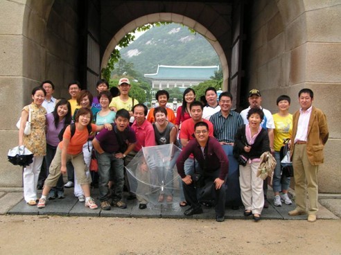 團員們在韓國總統(tǒng)府青瓦臺前合影留念