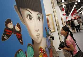 9月9日,2009上海藝術(shù)博覽會(huì)在上海世貿(mào)商城開(kāi)幕。本屆博覽會(huì)展示面積達(dá)到2.4萬(wàn)平方米,來(lái)自美國(guó)、法國(guó)、德國(guó)、韓國(guó)、日本等10多個(gè)國(guó)家的120多家海內(nèi)外畫廊和機(jī)構(gòu)在藝博會(huì)上集中展示了各類題材的國(guó)畫、油畫、雕塑、攝影、裝置藝術(shù)等作品。新華社記者