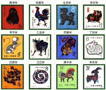 我國(guó)發(fā)行的第一輪生肖郵票。(資料照片) |