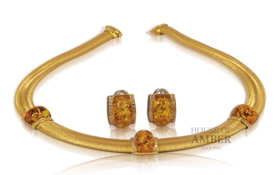 R展示了多款經(jīng)典設(shè)計(jì),其中獻(xiàn)給丹麥王妃的一套首飾頗為搶眼。該款設(shè)計(jì)結(jié)合了金、琥珀、鉆石三種元素,項(xiàng)鏈主鏈由18K金構(gòu)成,中間鑲嵌有三顆酒金色琥珀,琥珀周圍被一圈閃亮的鉆石包圍,高貴而奢華。據(jù)悉,該品牌目前已登陸北京。 |