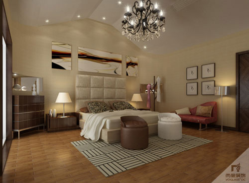 主臥室運(yùn)用了一整面墻的米色壁紙,給人溫馨的感覺,這也正是臥室要達(dá)到最佳效果。