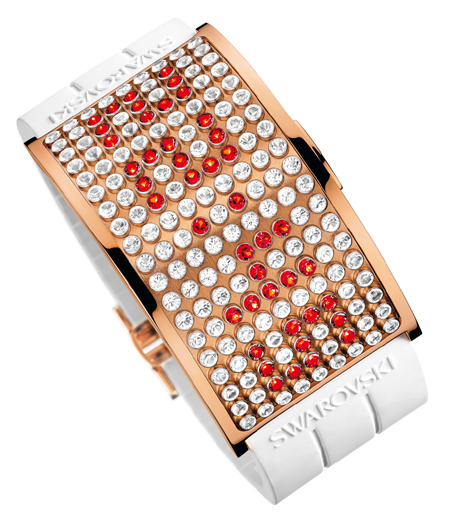 ▲施華洛世奇以AvantTime概念為靈感的首款限量版D:Light手表綴以171顆施華洛世奇切割仿水晶。該款手表看似如高貴優(yōu)雅的手鏈,卻內(nèi)藏施華洛世奇特別設(shè)計的機芯。只要輕按黑色搪瓷襯底,綴以金屬天鵝標(biāo)志的橢圓形按掣,仿水晶就會閃動發(fā)光,并以和諧悅目的橙光顯示時間,在片刻過后如變戲法般消失。