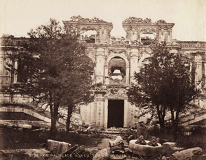 托馬斯·查爾德的圓明園。2008年華辰春季影像拍賣會上,出自19世紀著名攝影家托馬斯·查爾德之手的三張圓明園和三張頤和園古董文物原版老照片,以96萬元的價格成交,創(chuàng)下了國內老照片成交紀錄。
