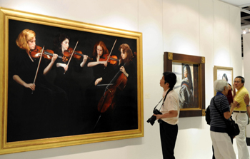 陳逸飛《弦樂四重奏》。新華社記者 宋振平/攝 |