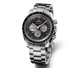 1975年7月17日,當(dāng)美國宇航員陸軍中將托馬斯·斯塔福德和前蘇聯(lián)宇航員陸軍中將阿列克謝·列昂諾夫在連接各自太空飛船的對(duì)接艙口握手時(shí),這兩位太空先驅(qū)與他們的宇航員同伴均佩戴有歐米茄超霸專業(yè)計(jì)時(shí)表。為紀(jì)念這一歷史性握手35周年,歐米茄特別推出超霸專業(yè)月球表阿波羅—聯(lián)盟號(hào)“35周年紀(jì)念版”計(jì)時(shí)表,限量1975枚。該款腕表表盤由進(jìn)入地球大氣層、高速撞擊陸地表面后殘存的隕石制作而成,隕石表盤的黑色是表面氧化作用的結(jié)果,銀色秒針和計(jì)時(shí)器小表盤均展現(xiàn)出隕石的自然色澤。 |
