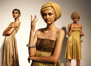 日前,世界首個鉆石品牌Forevermark(TM)永恒印記“SHINING LIGHT”鉆飾設(shè)計大賽獲獎作品全球首展在北京中央美術(shù)學(xué)院舉辦。30位來自非洲南部的年輕設(shè)計師以25000顆總重達630克拉鉆石設(shè)計的美鉆飾品由模特們佩戴向觀眾展示。圖為模特在展示鉆石飾品。