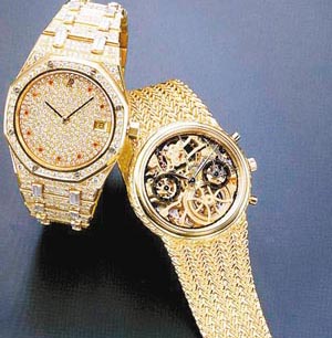 .25克拉的鉆石,標(biāo)價(jià)僅6000余元;一只50年代出品的14K金帝后手鏈男表的表價(jià)也只有4000多元;同樣產(chǎn)于50年代末期的一只雅典全鋼自動(dòng)男表的標(biāo)價(jià)竟不到3000元,這樣的價(jià)格比海外市場(chǎng)低不少。還有如50年代出品的梅花金表、雷達(dá)綠馬等中古表,盡管它們?cè)趪?guó)際市場(chǎng)上不屬熱門貨,但只要品相尚可且價(jià)格適中的話仍可買進(jìn),其未來(lái)的升值潛力不容小覷。 我國(guó)每年都會(huì)于春、秋兩季在京、津、滬、穗等主要城市舉辦藝術(shù)品拍賣會(huì),拍賣會(huì)上也時(shí)有中古表露面。前些年,北京曾拍出一對(duì)“伯爵鉆石情侶表”,當(dāng)時(shí)僅以底價(jià)8萬(wàn)元成交,香港中古表收藏迷驚呼“該成交價(jià)格實(shí)在太低了”。由此可見(jiàn),真、精、新的中古表在我國(guó)收藏市場(chǎng)中仍然有著巨大的升值空間。