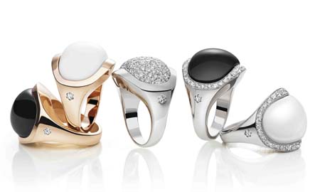 萬寶龍品牌繼白雪美人之EtoiledeMontblanc鉆飾珠寶系列的三款18K金戒指后,又于近期推出了兩款新品,均為白金鉆石戒指。兩款最新設計采用白金材質(zhì)綴以黑色縞瑪瑙或白瑪瑙,用鉆石搭配,在設計和外觀上令人眼前一亮?傊亓窟_0.8克拉的裝飾鉆石由不同大小的圓形明亮鉆石構成。該系列戒指環(huán)上更鑲嵌有獨一無二的萬寶龍星形美鉆。
