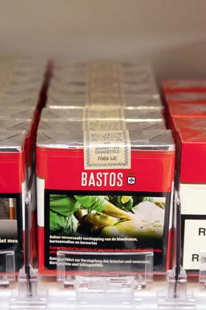 12月6日,在比利時的利赫特費爾德,外包裝上介紹與吸煙有關(guān)疾病的香煙被擺在柜臺上出售,以提醒人們吸煙有害健康。近年來,比利時各種禁煙措施成效顯著,煙民比例幾乎呈直線下降趨勢。