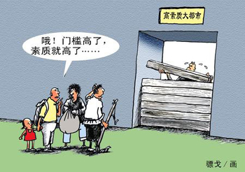 在傳統(tǒng)戶籍制度逐漸松動,全國許多大中城市紛紛降低外來人口進入“門檻”,并給予外來人口“市民待遇”的今天,形形色色的“人口準入制度”無異于與時代潮流唱反調(diào),外來人口“素質(zhì)論”顯然是建設(shè)和諧社會過程中的不和諧音符。什么時候我們不再拿外來人口的素質(zhì)說事兒,就無疑表明城里人的文明素質(zhì)、地方政府的執(zhí)政素質(zhì)大大向上提升了一步。