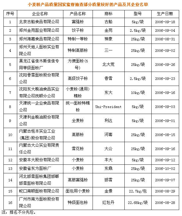 國家質(zhì)檢總局組織對普通小麥粉和專用小麥粉產(chǎn)品質(zhì)量進(jìn)行了國家監(jiān)督抽查,共抽查了北京、天津、河北、內(nèi)蒙古、遼寧、吉林、黑龍江、江蘇、安徽、山東、河南、廣東、四川等13個省、市、自治區(qū)224家企業(yè)生產(chǎn)的246種產(chǎn)品,產(chǎn)品抽樣合格率為95.5%。自2002年開始實施小麥粉市場準(zhǔn)入制度以來,質(zhì)檢總局加強了對小麥粉加工企業(yè)的監(jiān)管,小麥粉的產(chǎn)品質(zhì)量比2002年提高了60.9個百分點。