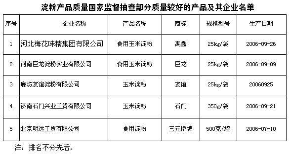 為了保護消費者的合法權(quán)益,促進淀粉行業(yè)的健康發(fā)展,國家質(zhì)檢總局組織對淀粉產(chǎn)品質(zhì)量進行了國家監(jiān)督抽查。共抽查了北京、天津、河北、山東、遼寧、河南等6個省、直轄市29家企業(yè)生產(chǎn)的34種產(chǎn)品,產(chǎn)品抽樣合格率為88.2%。