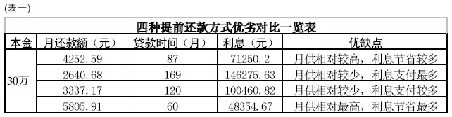 方式四,剩余貸款保持總本金不變,只將還款期限縮短。