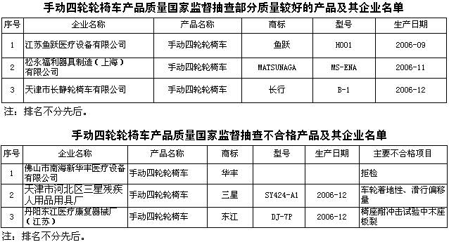 為維護廣大消費者的合法權益,促進行業(yè)健康發(fā)展,國家質檢總局組織對手動四輪輪椅車產品質量進行了國家監(jiān)督抽查,共抽查了天津、河北、上海、江蘇、廣東、河南等6個省、直轄市22家企業(yè)生產的22種產品,產品抽樣合格率為86.4%。