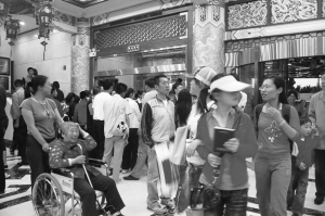 等待吃烤鴨的客人擠滿了全聚德和平門店的大廳,有的只好蹲在地上,有的都擠到大門口來(lái)了?绝喺娴倪@么好吃嗎?全聚德真的有這么高的品牌價(jià)值嗎? | 4月30日 車票難買心情急