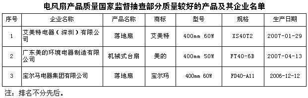為維護廣大消費者的合法權(quán)益,促進電風扇行業(yè)健康發(fā)展,國家質(zhì)檢總局組織對電風扇產(chǎn)品質(zhì)量進行了國家監(jiān)督抽查。共抽查了廣東、浙江、江蘇等3個省35家企業(yè)生產(chǎn)的36種產(chǎn)品(不涉及出口),產(chǎn)品抽樣合格率為91.7%。 此次抽查依據(jù)GB4706.1-1998