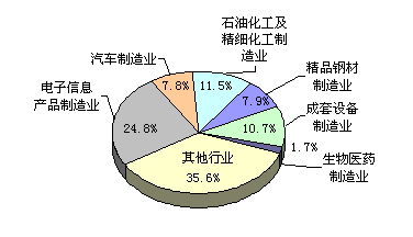 區(qū)縣工業(yè)持續(xù)增長。全市區(qū)縣規(guī)模以上工業(yè)總產(chǎn)值11140.81億元,比上年增長14.7%,占全市規(guī)模以上工業(yè)總產(chǎn)值的比重達(dá)到60.8%。 重點(diǎn)發(fā)展行業(yè)發(fā)展態(tài)勢良好。電子信息產(chǎn)品制造業(yè)、汽車制造業(yè)、石油化工及精細(xì)化工制造業(yè)、精品鋼材制造業(yè)、成套設(shè)備制造業(yè)、生物醫(yī)藥制造業(yè)等六個重點(diǎn)發(fā)展工業(yè)行業(yè)完成工業(yè)總產(chǎn)值11789.46億元,比上年增長17.9%,占全市規(guī)模以上工業(yè)總產(chǎn)值的比重達(dá)到64.4%(見圖4)。