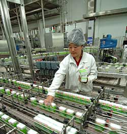 伊利現(xiàn)代化的純牛奶生產(chǎn)線 | 如果把一個(gè)地區(qū)的代表性產(chǎn)品、企業(yè)、行業(yè)看作是它的“名片”,我們?cè)趦?nèi)蒙古自治區(qū)出示的名片上可看到大草原、伊利、羊絨加工等字樣。 近年來(lái),內(nèi)蒙古乳業(yè)在全國(guó)刮起了一陣強(qiáng)勁風(fēng)暴:一個(gè)經(jīng)濟(jì)社會(huì)發(fā)展還都相對(duì)落后的邊疆民族地區(qū),在同一行業(yè)接連出現(xiàn)了兩個(gè)全國(guó)知名品牌、知名企業(yè),其產(chǎn)品銷售覆蓋全國(guó)市場(chǎng),被國(guó)人譽(yù)為內(nèi)蒙古的“兩頭!苯(jīng)濟(jì)現(xiàn)象。