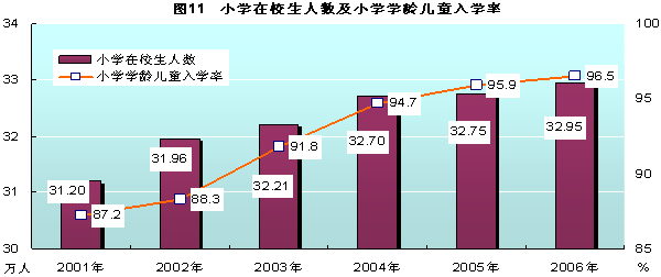 全區(qū)普通高等教育招生8359人,在校生23327人,畢業(yè)生3846人。各類中等職業(yè)教育招生2336人,在校生14775人,畢業(yè)生2280人。全區(qū)普通高中招生1.32萬人,在校生3.77萬人,畢業(yè)生0.99萬人。普通初中招生4.50萬人,在校生12.79萬人,畢業(yè)生3.58萬人。普通小學(xué)招生5.29萬人,在校生32.95萬人,畢業(yè)生4.87萬人。全區(qū)小學(xué)學(xué)齡兒童入學(xué)率達(dá)96.5%,比上年提高了0.6個(gè)百分點(diǎn)。幼兒園在園幼兒9149人。 全年共承擔(dān)國家科技項(xiàng)目25項(xiàng),安排自治區(qū)級重點(diǎn)科技項(xiàng)目121項(xiàng),全區(qū)取得省部級以上科技成果28項(xiàng)。受理專利申請89件,授權(quán)專利81件。 全區(qū)共有氣象臺站41個(gè),氣象雷達(dá)觀測站點(diǎn)4個(gè),衛(wèi)星云圖接收站點(diǎn)7個(gè),地震臺站8個(gè),水文監(jiān)測站28個(gè)。