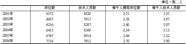 表3 衛(wèi)生機(jī)構(gòu)床位數(shù)和技術(shù)人員數(shù)