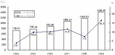 2001-2006年工業(yè)增加值及其增長(zhǎng)速度