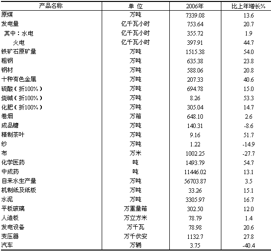 2006年主要工業(yè)產(chǎn)品產(chǎn)量及其增長(zhǎng)速度