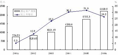2001-2006年全社會(huì)固定資產(chǎn)投資及其增長(zhǎng)速度