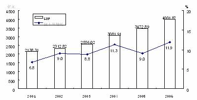 圖1 2001-2006年生產(chǎn)總值及其增長(zhǎng)速度