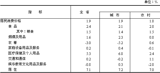 全省財(cái)政總收入完成887億元,比上年增長(zhǎng)16.0%。地方財(cái)政一般預(yù)算收入完成379.9億元,比上年增長(zhǎng)21.5%;其中增值稅完成67.5億元,增長(zhǎng)20.5%;營(yíng)業(yè)稅89.5億元,增長(zhǎng)32.3%;企業(yè)所得稅41.3億元,增長(zhǎng)23.7%。全省地方一般預(yù)算支出完成893.5億元,比上年增長(zhǎng)17.0%。 全省積極推進(jìn)城市化戰(zhàn)略,城市化進(jìn)程進(jìn)一步加快。年末全省城市化水平達(dá)30.5%,比上年提高1個(gè)百分點(diǎn)。 居民消費(fèi)價(jià)格比上年上漲1.9%,其中服務(wù)價(jià)格上漲4.9%。商品零售價(jià)格上漲0.8%。工業(yè)品出廠價(jià)格上漲4.6%。原材料、燃料、動(dòng)力購(gòu)進(jìn)價(jià)格上漲7.6%。固定資產(chǎn)投資價(jià)格上漲1.8%。農(nóng)業(yè)生產(chǎn)資料價(jià)格上漲2.8%。