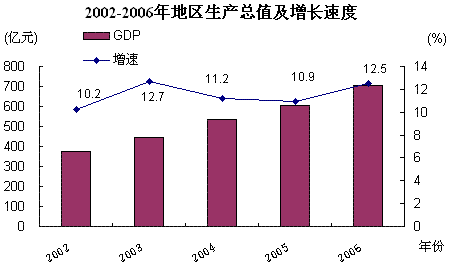 經(jīng)濟(jì)總量:全區(qū)經(jīng)濟(jì)持續(xù)快速增長(zhǎng)。全年實(shí)現(xiàn)地區(qū)生產(chǎn)總值706.98億元,比上年增長(zhǎng)12.5%,增速比上年提高1.6個(gè)百分點(diǎn),比全國平均水平高1.8個(gè)百分點(diǎn)。其中,第一產(chǎn)業(yè)完成增加值79.18億元,增長(zhǎng)6.1%;第二產(chǎn)業(yè)完成增加值347.54
