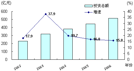 2002-2006年全社會(huì)固定資產(chǎn)投資總額及增長(zhǎng)速度