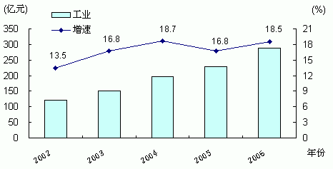 2002-2006年工業(yè)增加值及增長(zhǎng)速度