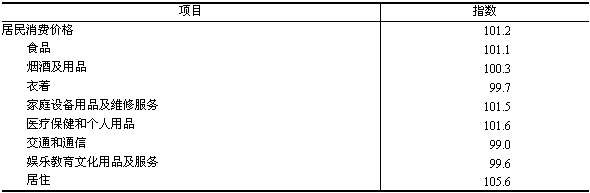 表1 2006年居民消費(fèi)價(jià)格指數(shù) (以上年為100)
