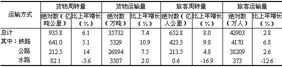 表8 2006年各種運(yùn)輸方式完成運(yùn)輸量